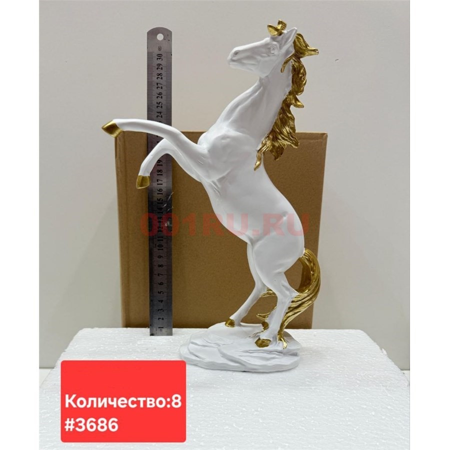 Лошадь статуэтка (3686) цвет белый с золотым 33 см