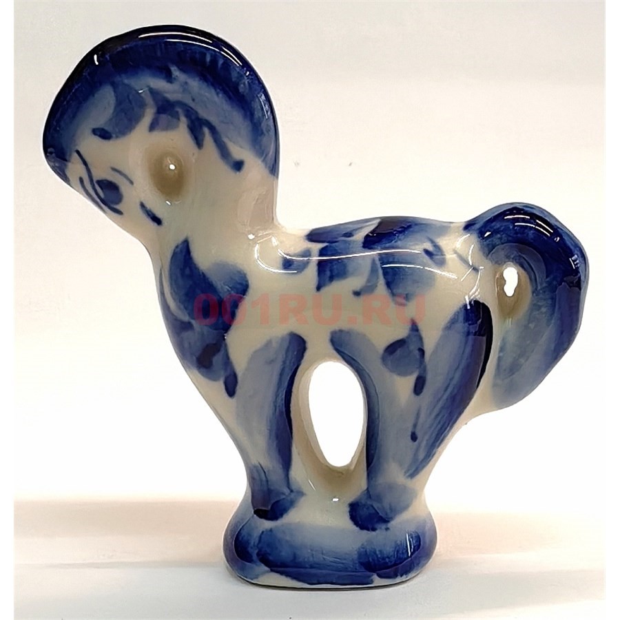 Лошадка конь гжель синяя Малыш 7,5x7 см символ 2026 года