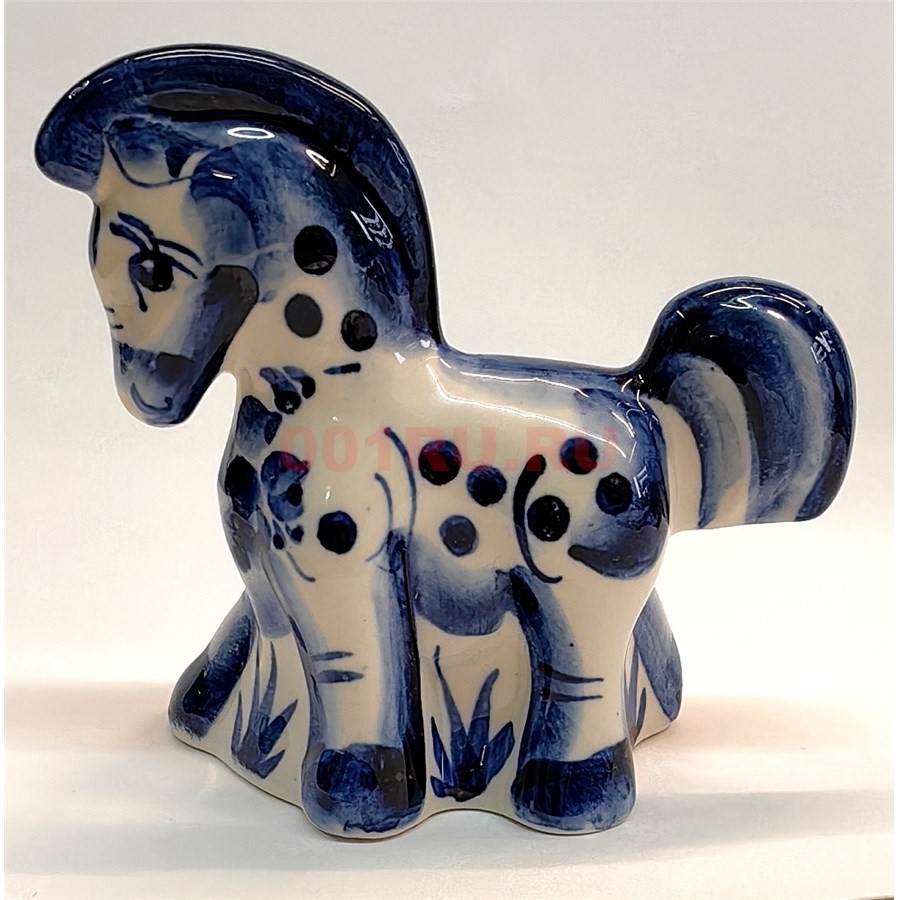 Лошадка конь гжель синяя Трюкач 10 см высота
