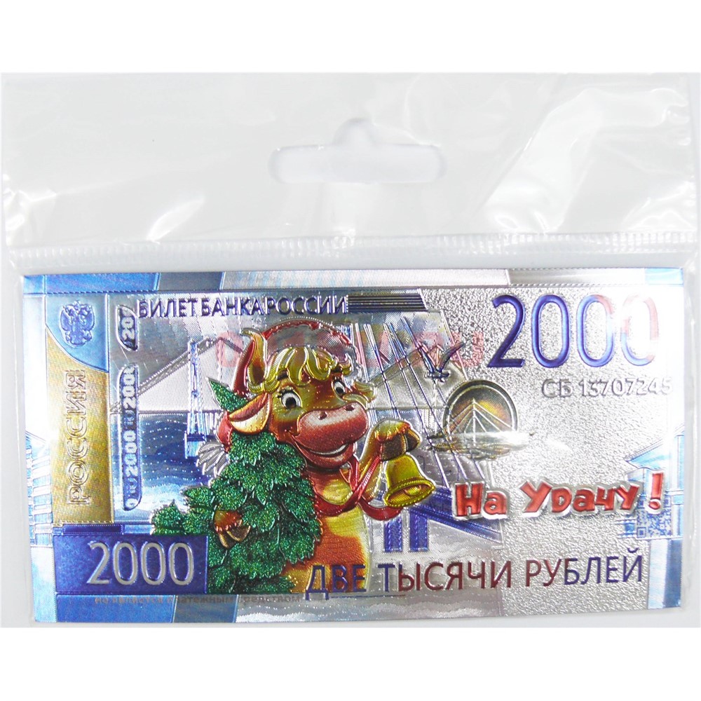 Магнит 2000 рублей из ПВХ на Удачу Бык Символ 2021 года