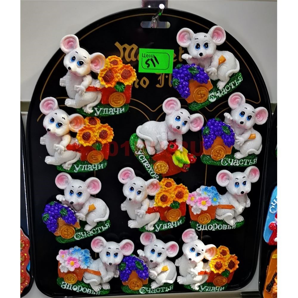 Магнит (511) керамический Крыса с тележкой цветов 24 шт/уп