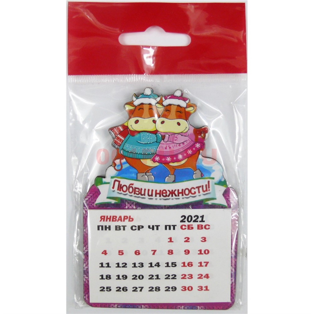 Магнит деревянный календарь Любви и нежности Бык Символ 2021 года