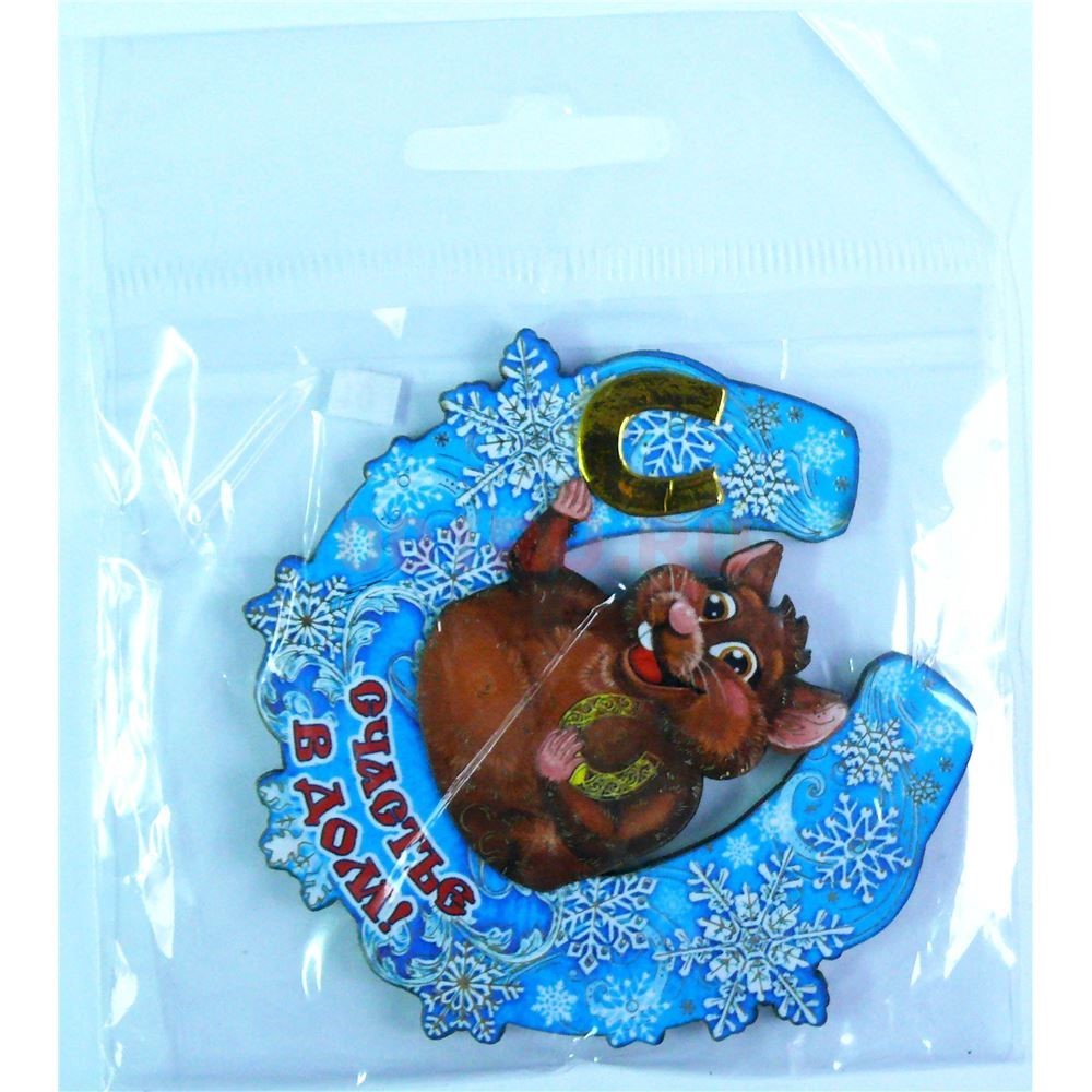 Магнит деревянный Крыса (MS-248) в подкове Символ 2020 года