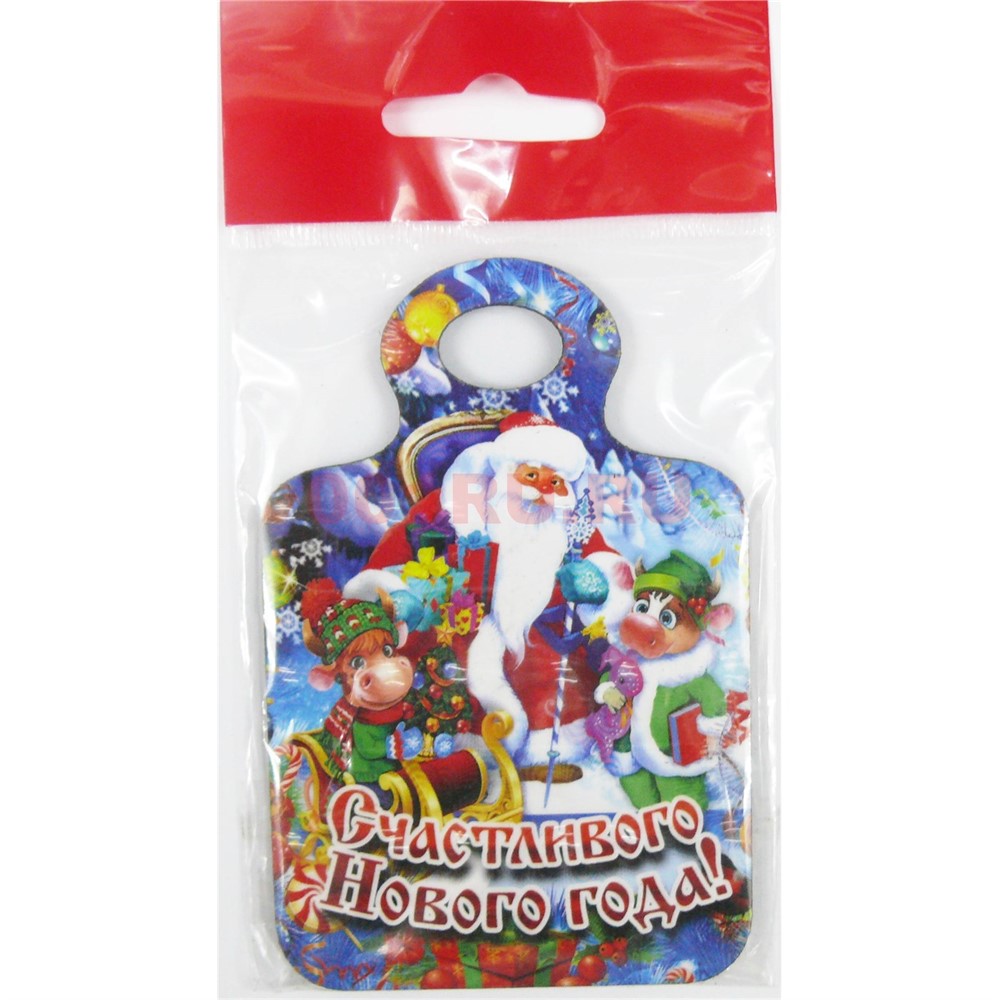 Магнит деревянный прямоугольный Счастливого нового года Бык Символ 2021 года