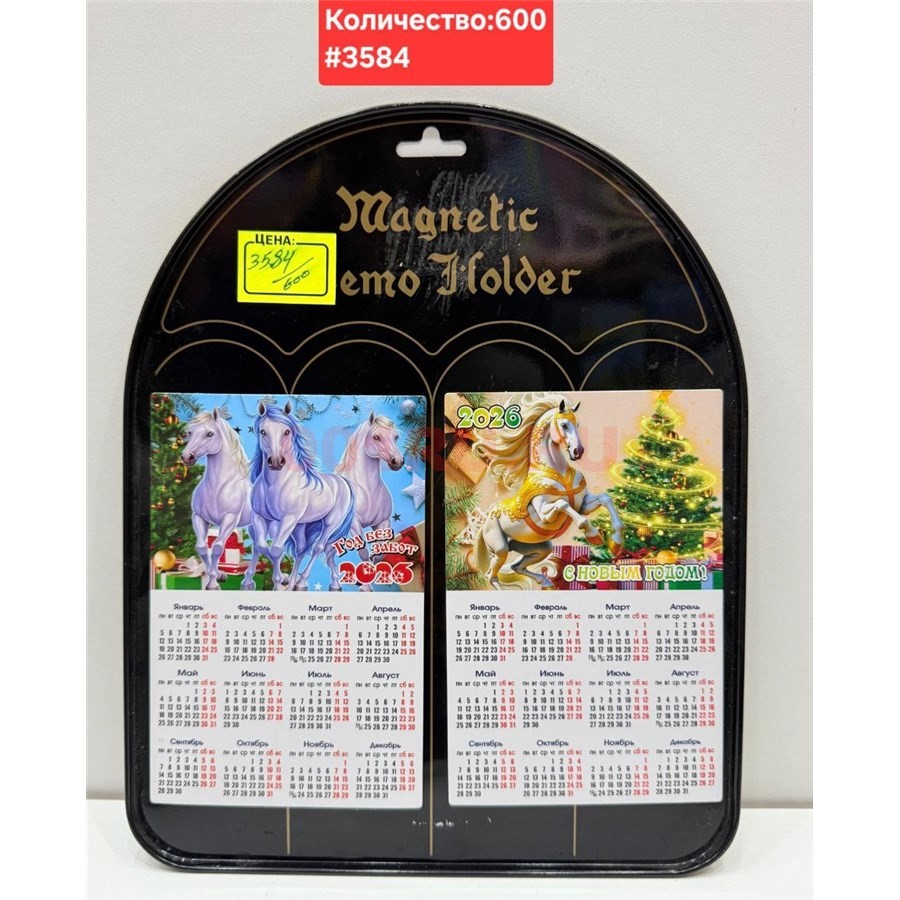 Магнит календарик (3584) с лошадками символ 2026 года 50 шт/упаковка
