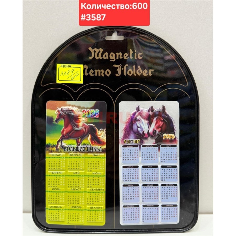 Магнит календарик (3587) с лошадками символ 2026 года 50 шт/упаковка