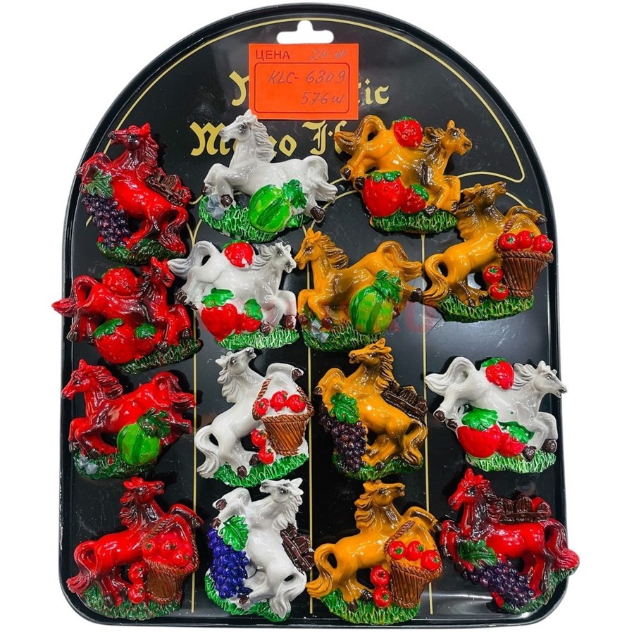 Магниты из полистоуна (KLC-6309) лошадки с ягодами и фруктами 24 шт/упаковка