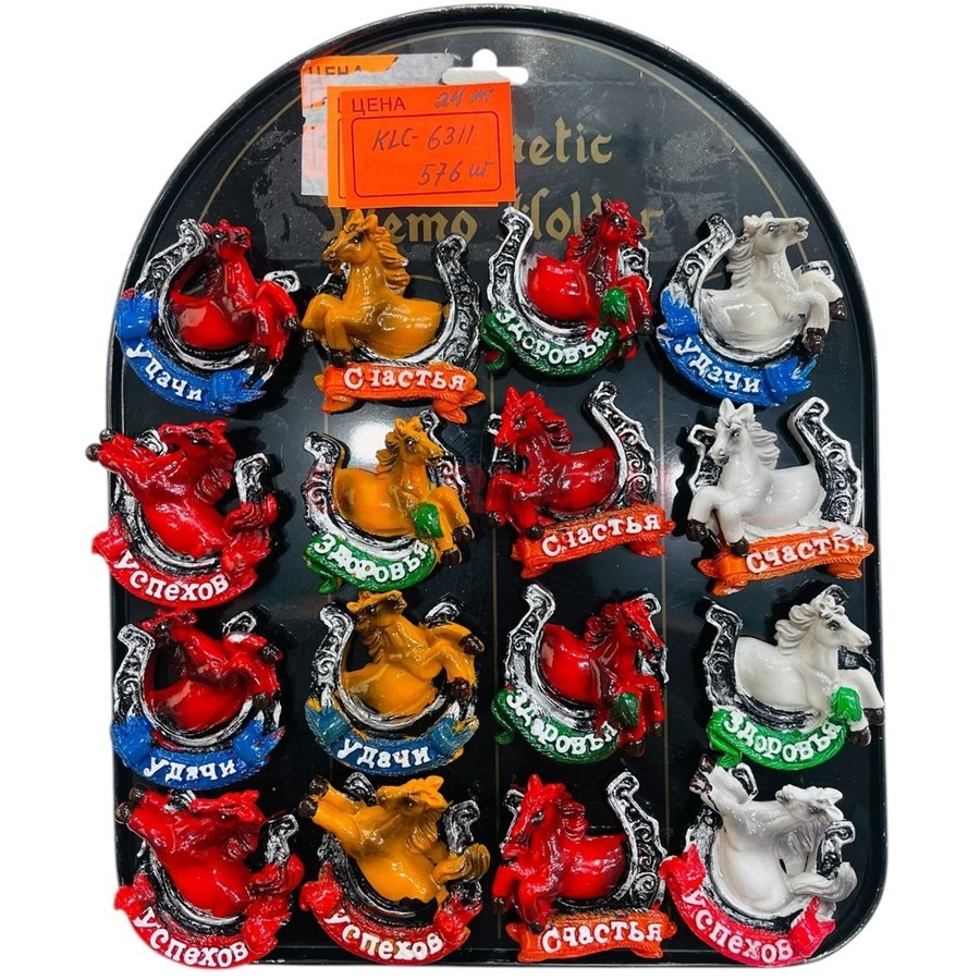 Магниты из полистоуна (KLC-6311) лошадки в подкове с пожеланиями 24 шт/упаковка