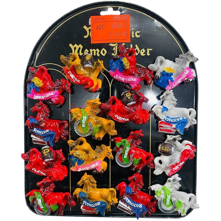 Магниты из полистоуна (KLC-6312) лошадки с пожеланиями 24 шт/упаковка