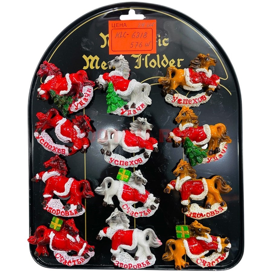 Магниты из полистоуна (KLC-6318) лошадки с пожеланиями символ 2026 года 24 шт/упаковка