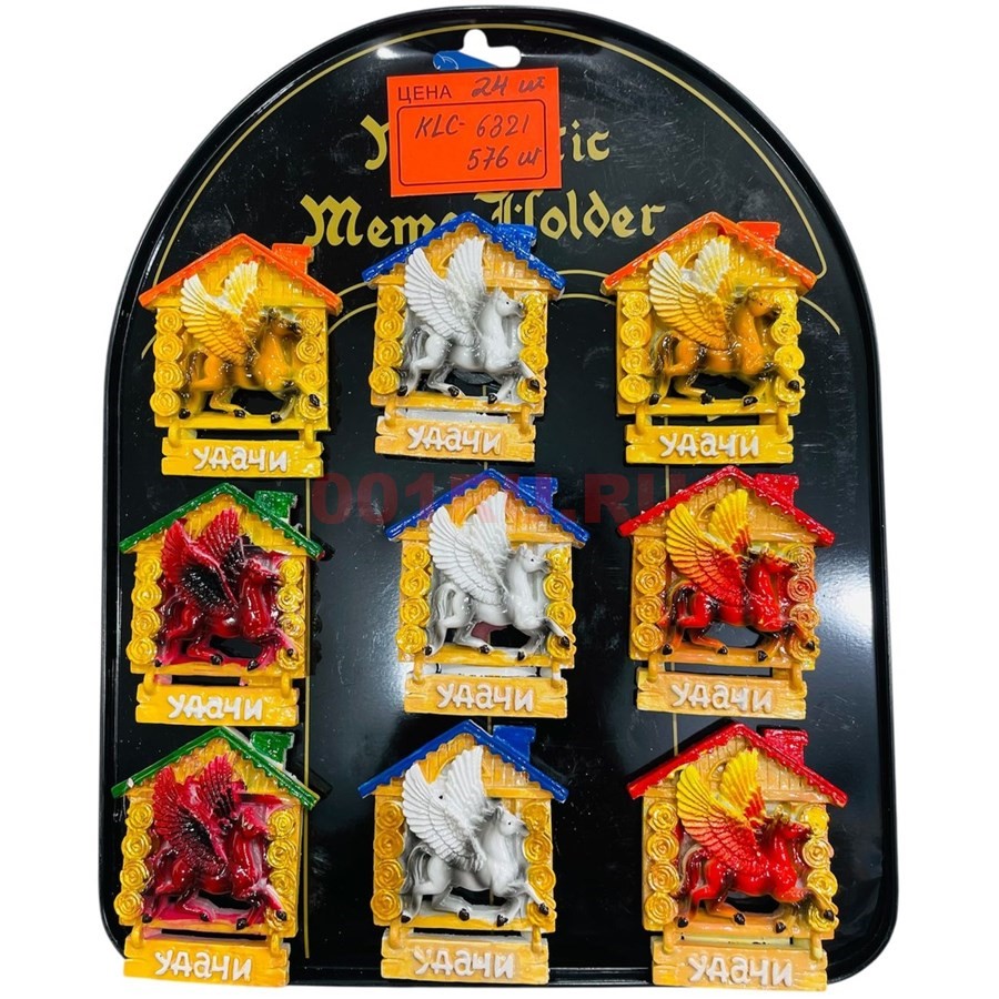 Магниты из полистоуна (KLC-6321) лошадки пегасы в домике символ 2026 года 24 шт/упаковка