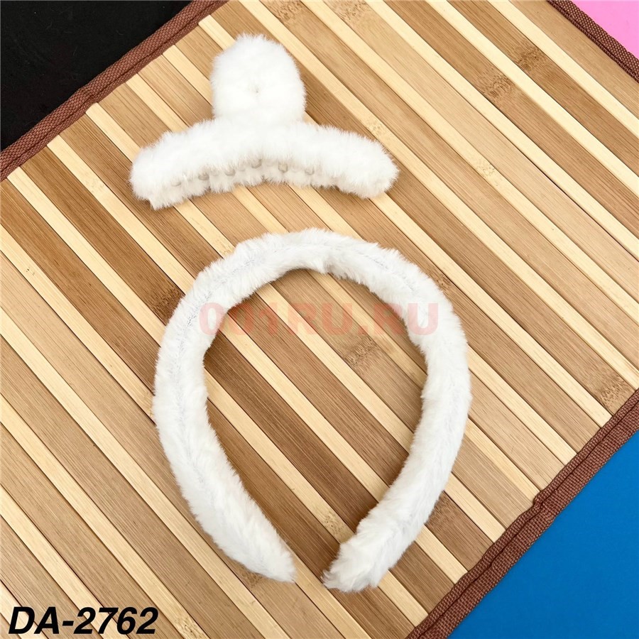 Меховой набор (DA-2762) ободок и краб цвет белый 12 шт/упаковка