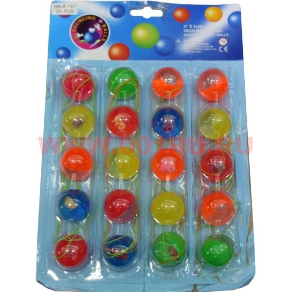 Мячик прыгун с игрушкой на резинке 30 мм (R-797) цена за 20 шт