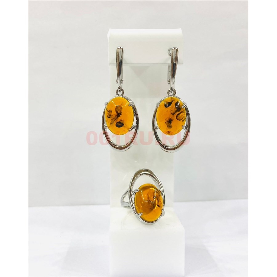 Набор 2-в-1 кольцо и серьги из янтаря цвет металл (YA-009)