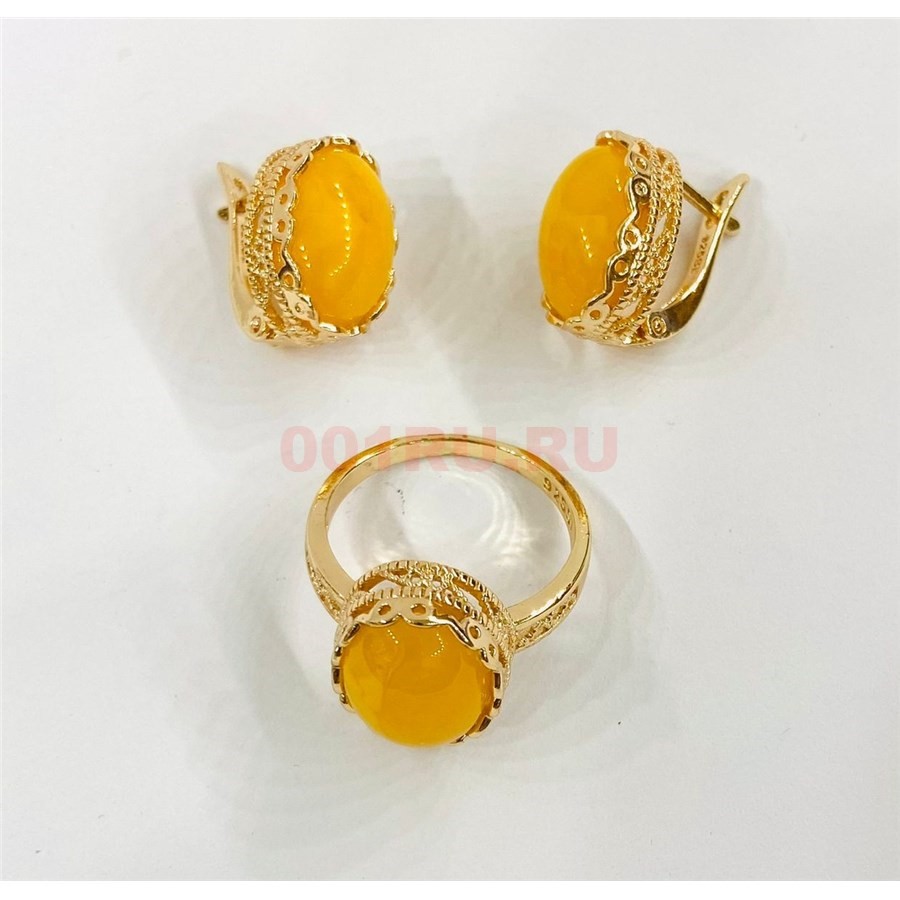 Набор 2-в-1 кольцо и серьги из янтаря цвет золото (YA-007)