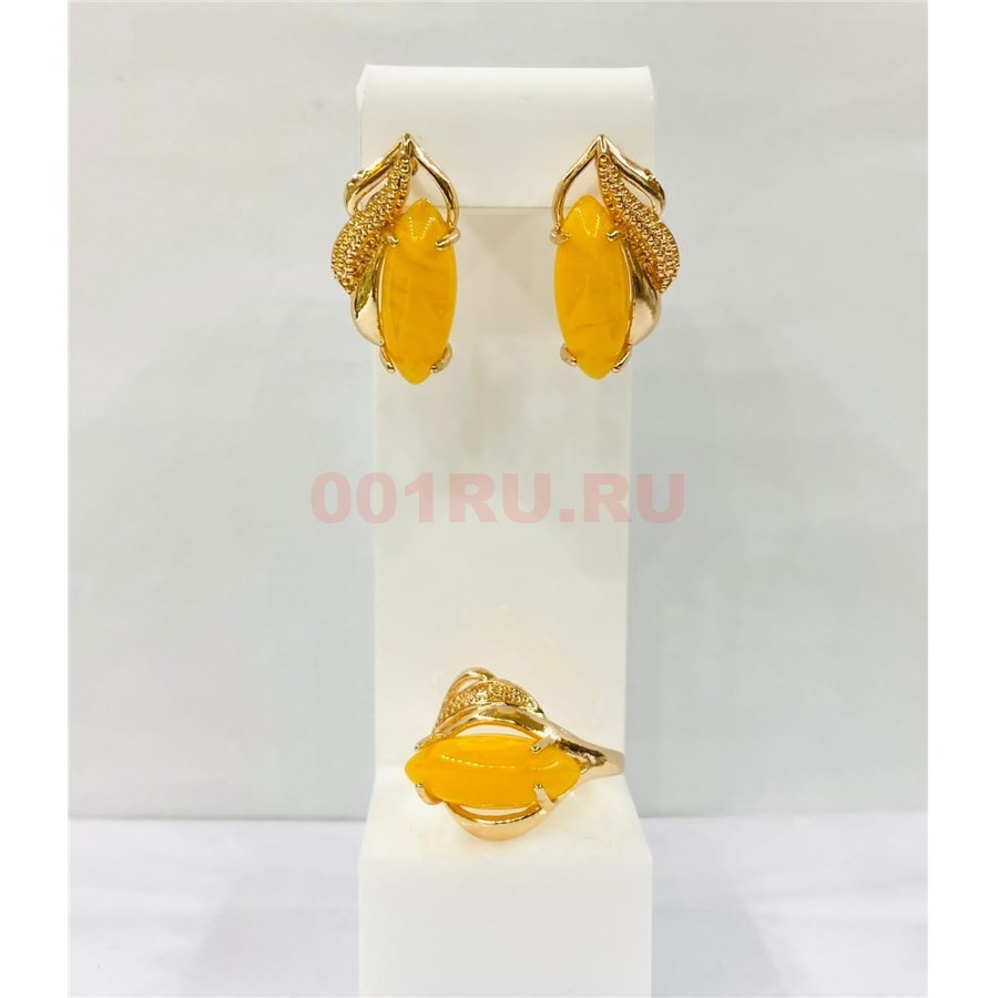 Набор 2-в-1 кольцо и серьги из янтаря цвет золото (YA-008)