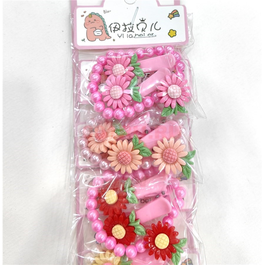 Набор детской бижутерии 2-в-1 Цветы (A-27) браслет и зажимы 100 наборов/упаковка