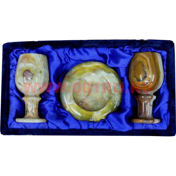 Набор из оникса "Пепельница и 2 бокала 11см" в бархатной упаковке