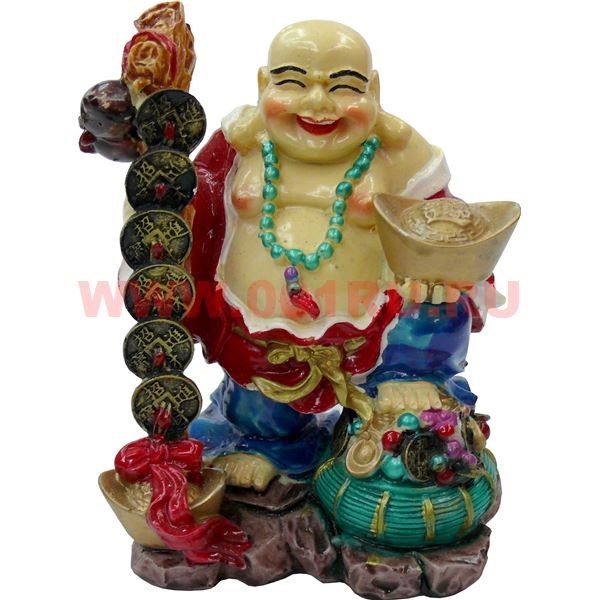 Нэцке, хотей цветной со слитком и монетами (11,5 см высота)