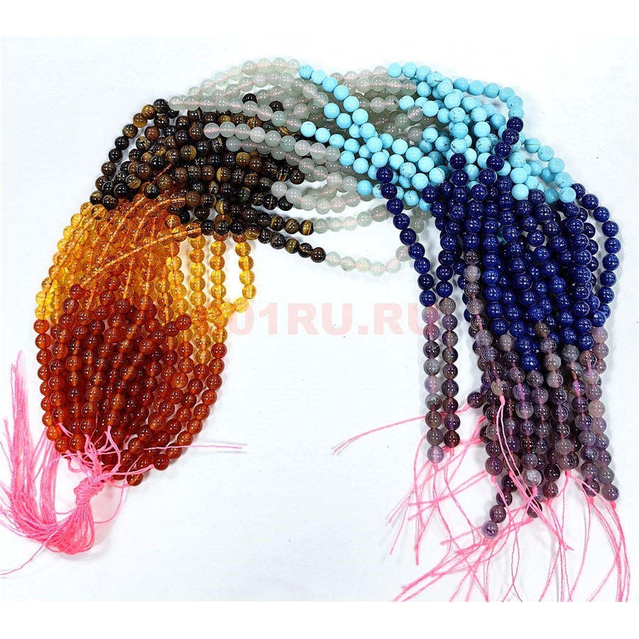 Нитка бусин 6 мм микс минералов 60-65 бусин