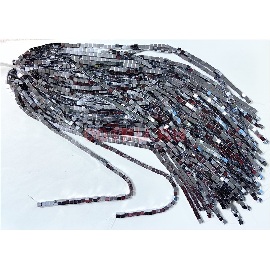 Нитка бусин гематит 6 мм под серебро в виде квадрата 40 см 66 бусин
