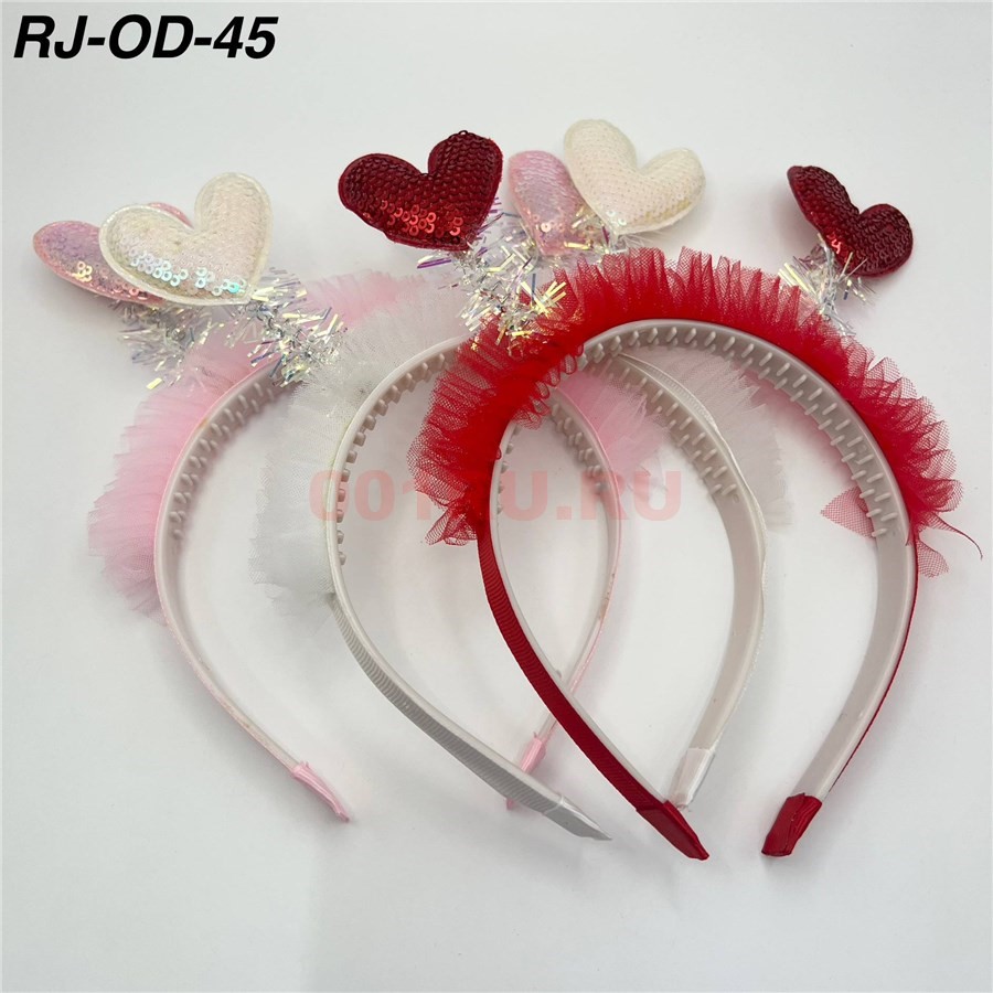 Ободок детский (RJ-OD-45) сердце цвета в ассортименте 12 шт/упаковка