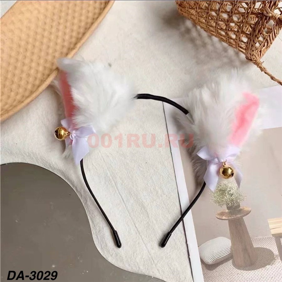 Ободок для волос (DA-3029) с ушками и бантами цвет белый 12 шт/упаковка