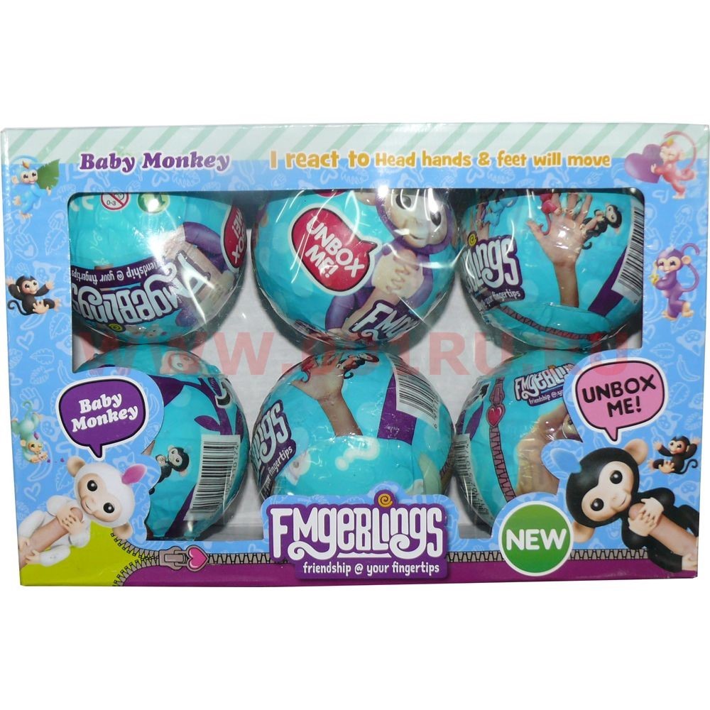 Обязьянка на палец игрушка в шаре 6 шт/уп