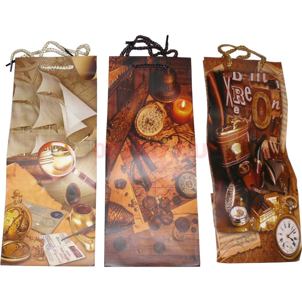 Пакет подарочный бумажный под бутылку 15х35 см 12 шт\упаковка
