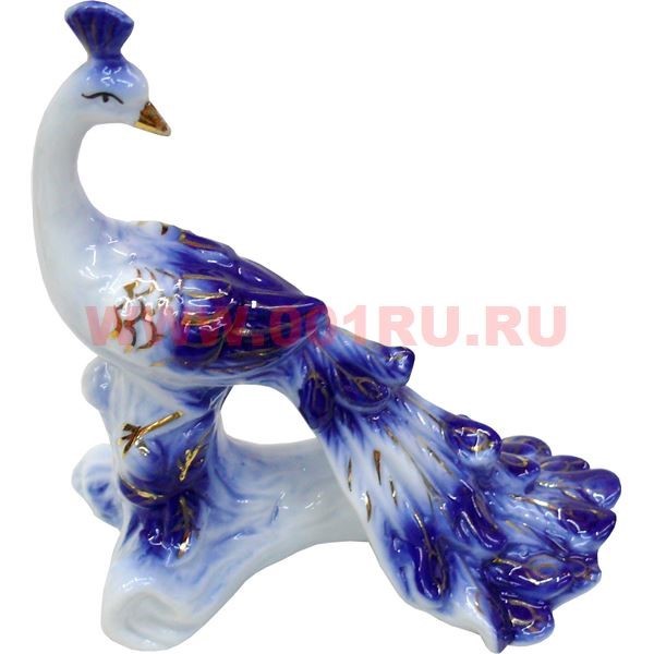 Павлин из фарфора под "гжель" 14 см высота (96 шт/кор)