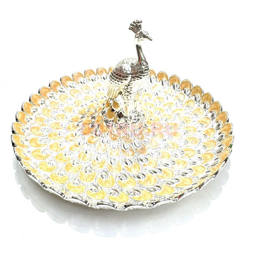 Поднос металлический Павлин цвет серебро (вариант 2)
