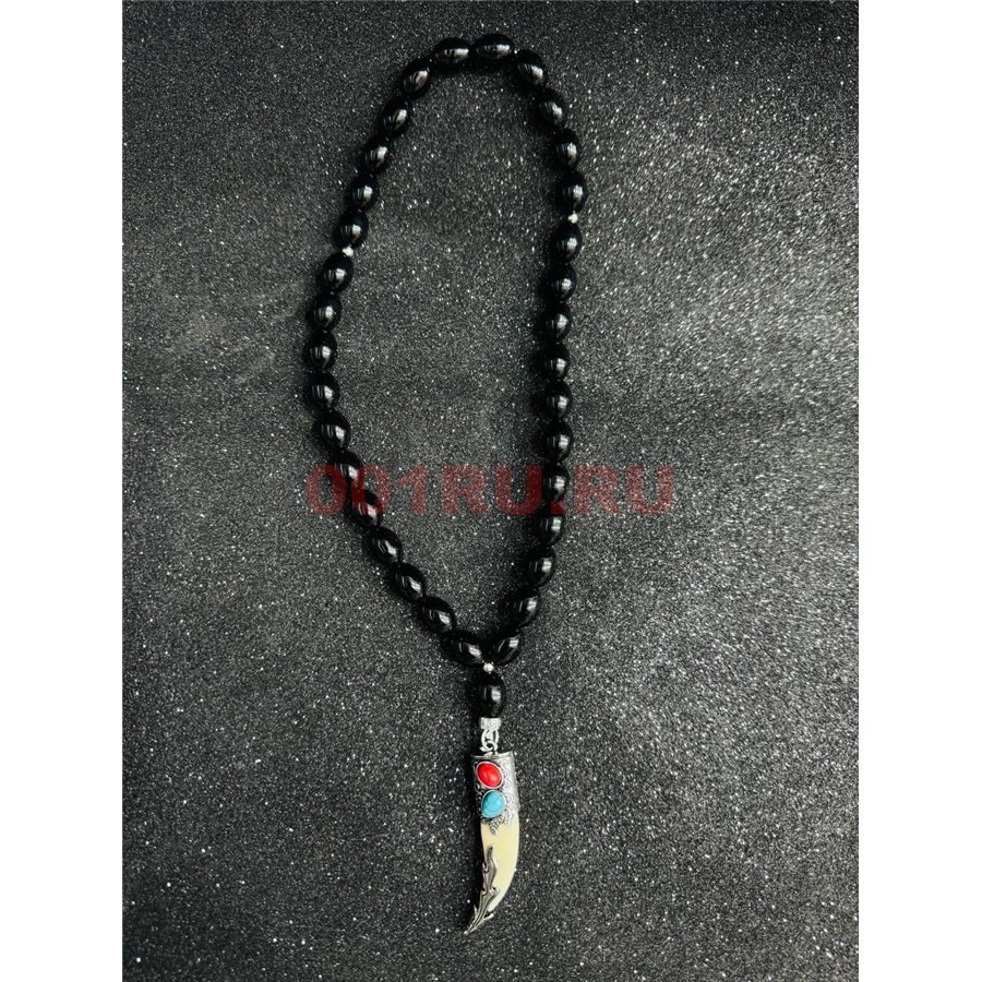 Подвеска (четки) Клык черные бусины 12 шт/упаковка (B-108)