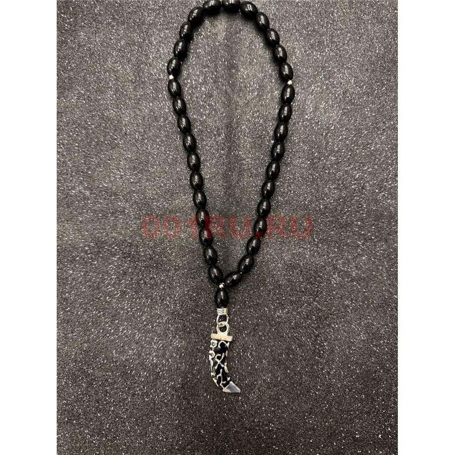 Подвеска (четки) Клык цвет металл черные бусины 12 шт/упаковка (B-102)