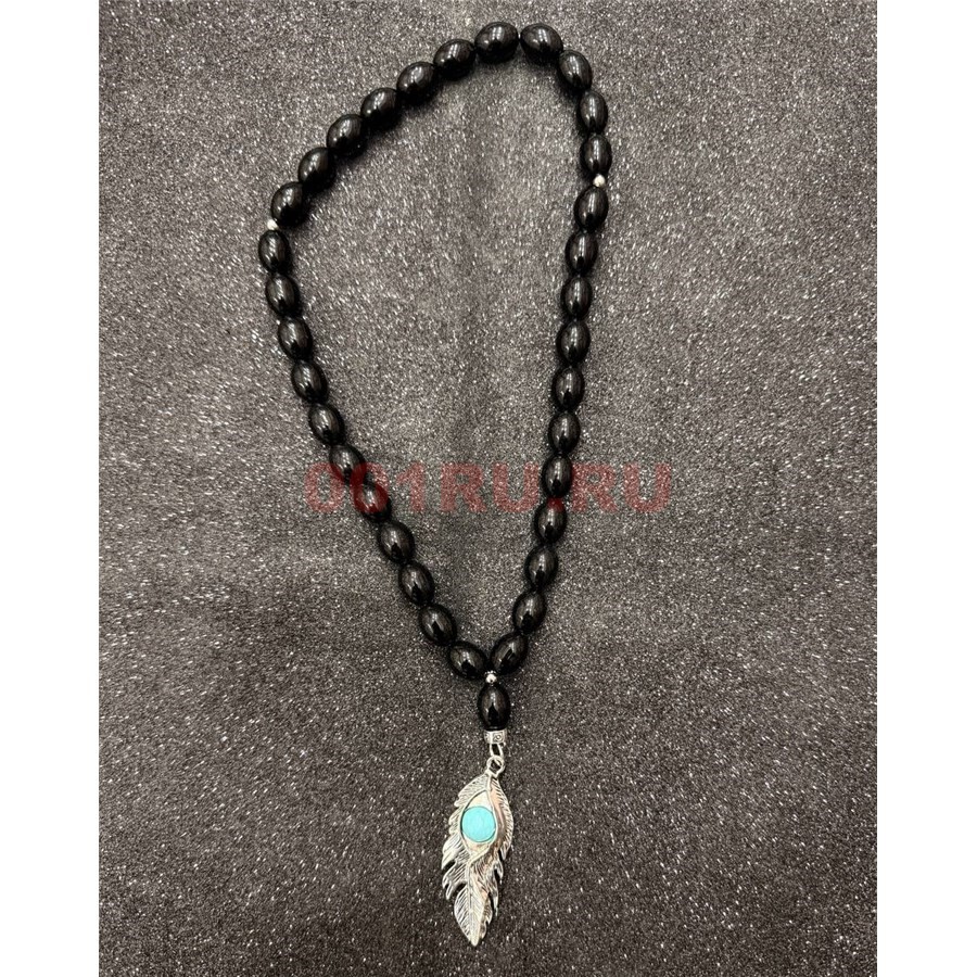 Подвеска (четки) Перо черные бусины 12 шт/упаковка (B-111)