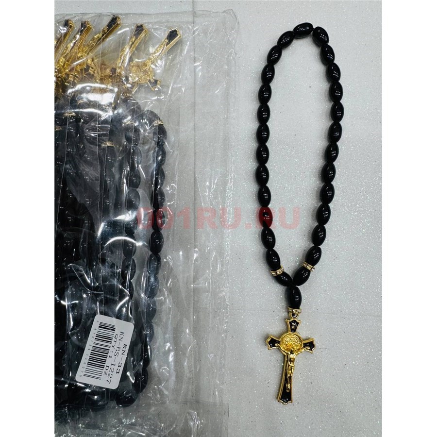 Подвеска (четки) православная Крест черные бусины 12 шт/упаковка (BS-1227)