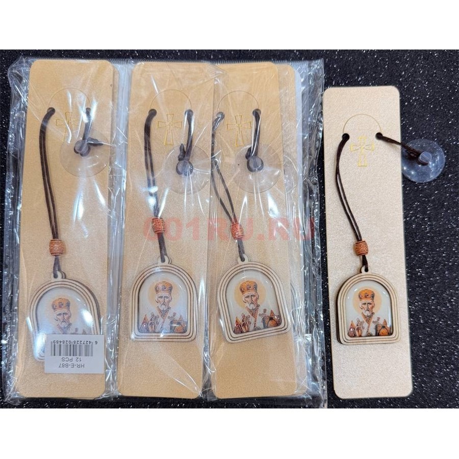 Подвеска на присоске православная (B87) с иконкой «Николай Чудотворец» 12 шт/упаковка
