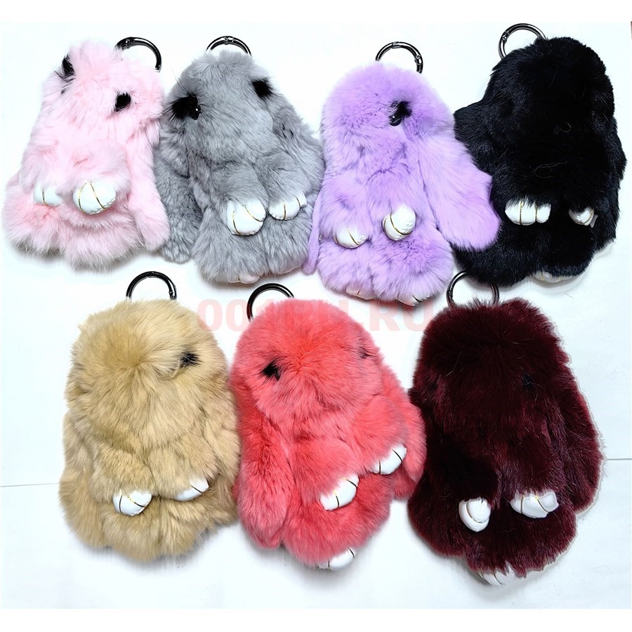 Подвеска брелок на рюкзак «Кролик с глазками» с натуральным мехом расцветки в ассортименте