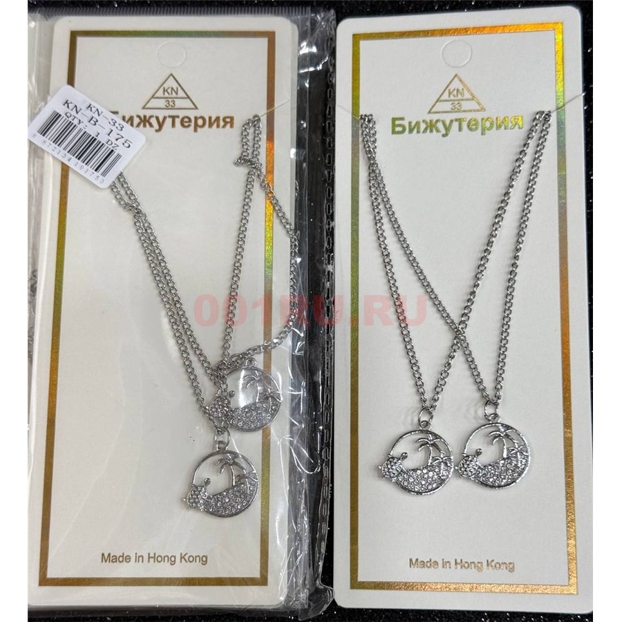 Подвеска парная металлическая с цепочкой (B-176) черепаха и пальмы 12 шт/упаковка