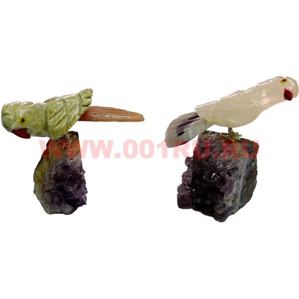 Попугай на камне 8 см (яшма, аметист)