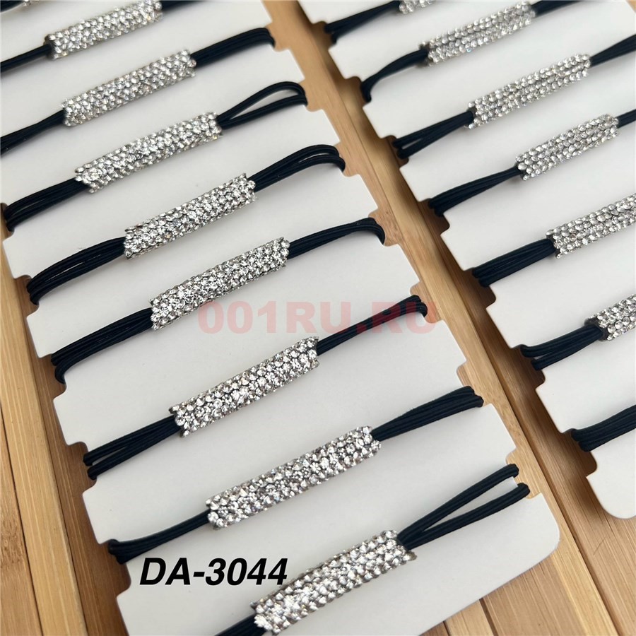 Резинка для волос (DA-3044) черная двойная со стразами 120 шт/блок