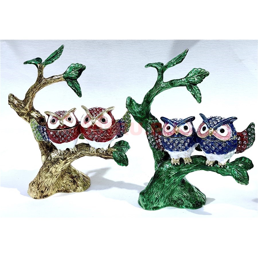 Шкатулка Две совы на ветке (QF-5697) металлическая со стразами