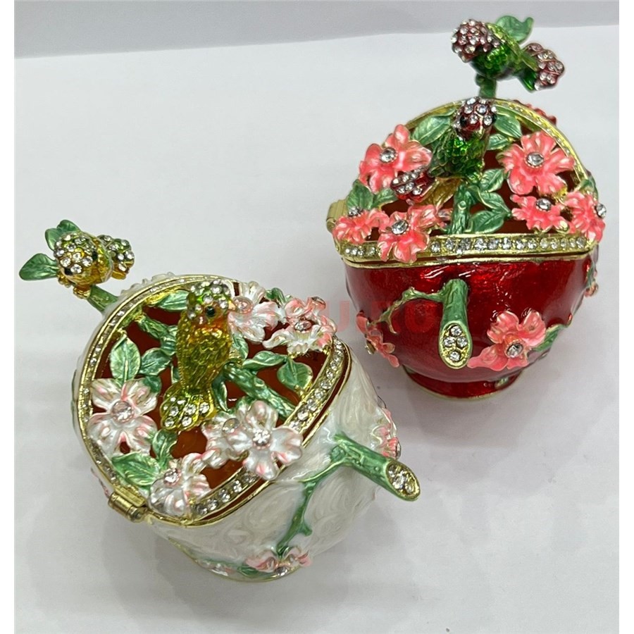 Шкатулка со стразами (QF-1645-3) «цветы с птичками» металлическая