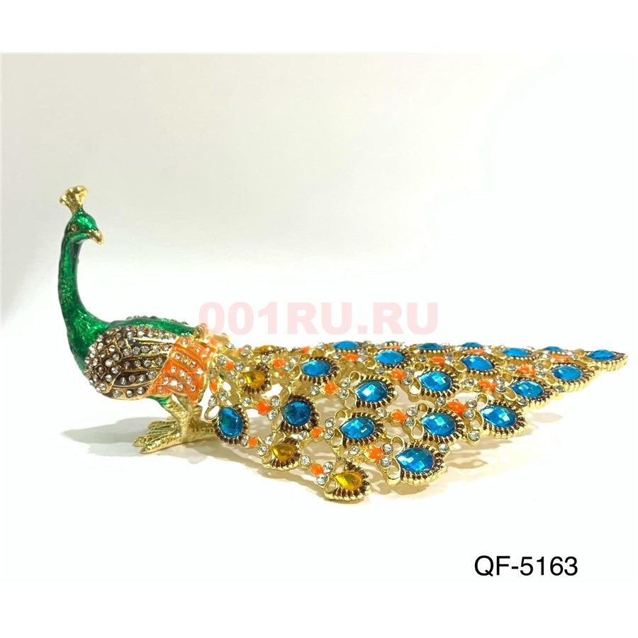 Шкатулка со стразами (QF-5163) Павлин металлическая