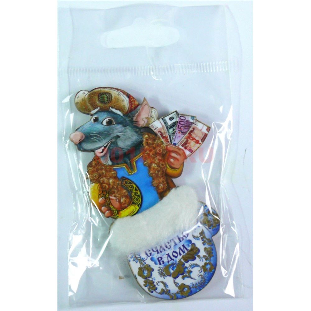 Символ 2020 года магнит деревянный Крыса в варежке (MS-268)