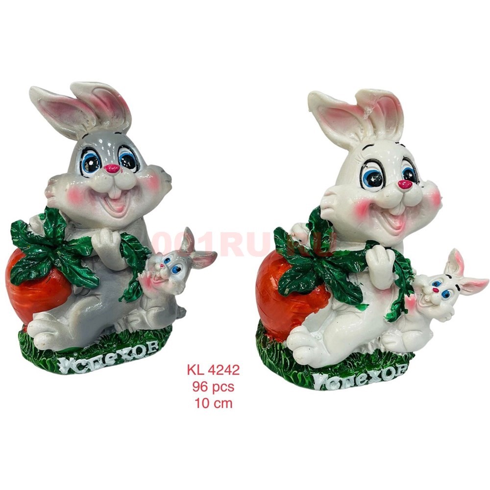 Символ 2023 года Кролики с морковкой (KL-4242) из полистоуна 2 шт/упаковка