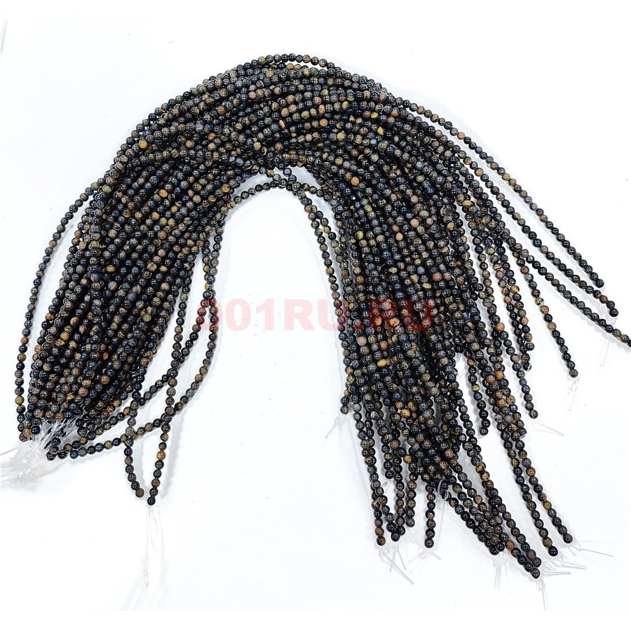 Соколиный глаз 4 мм натуральный минерал 75-80 бусин