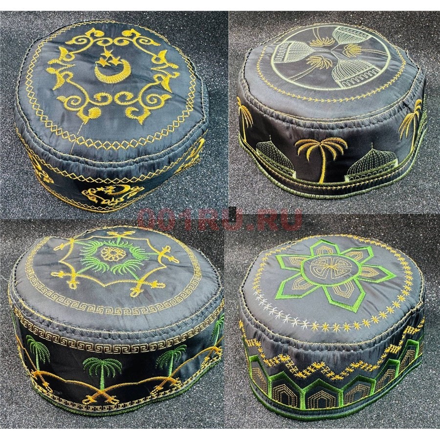 Тюбетейка мусульманская черная с узорами