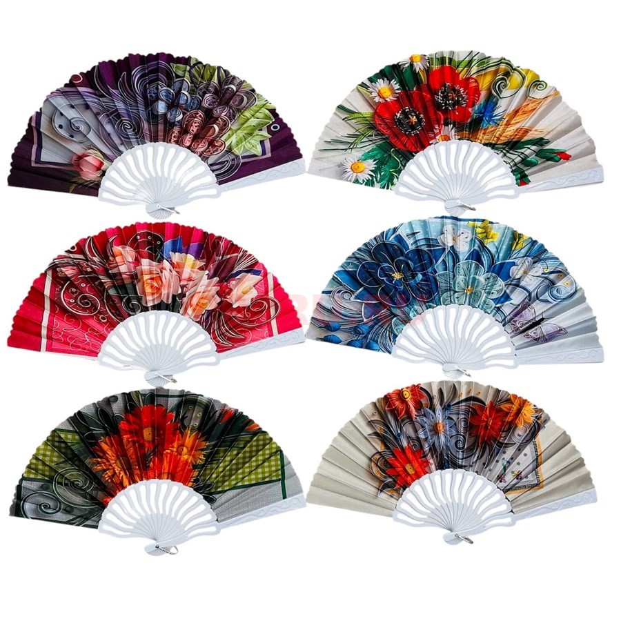 Веер ручной (KC-529) цветы узоры 12 шт/упаковка