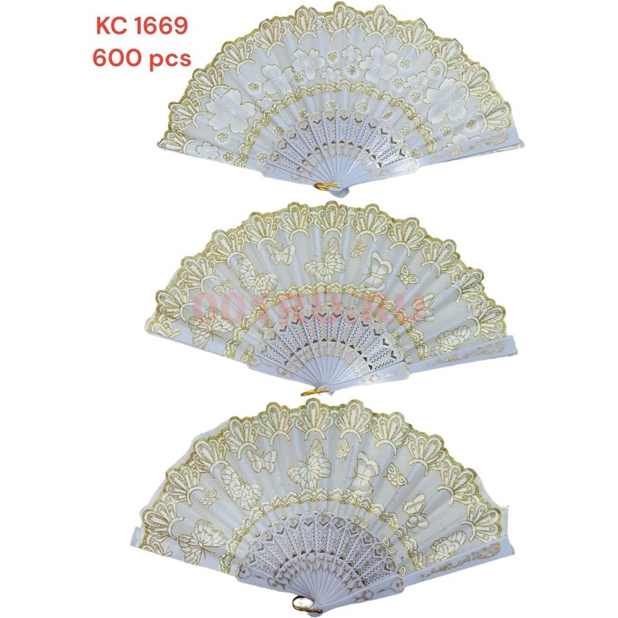 Веер ручной (KC-1669) белый с бабочками и цветами 12 шт/упаковка