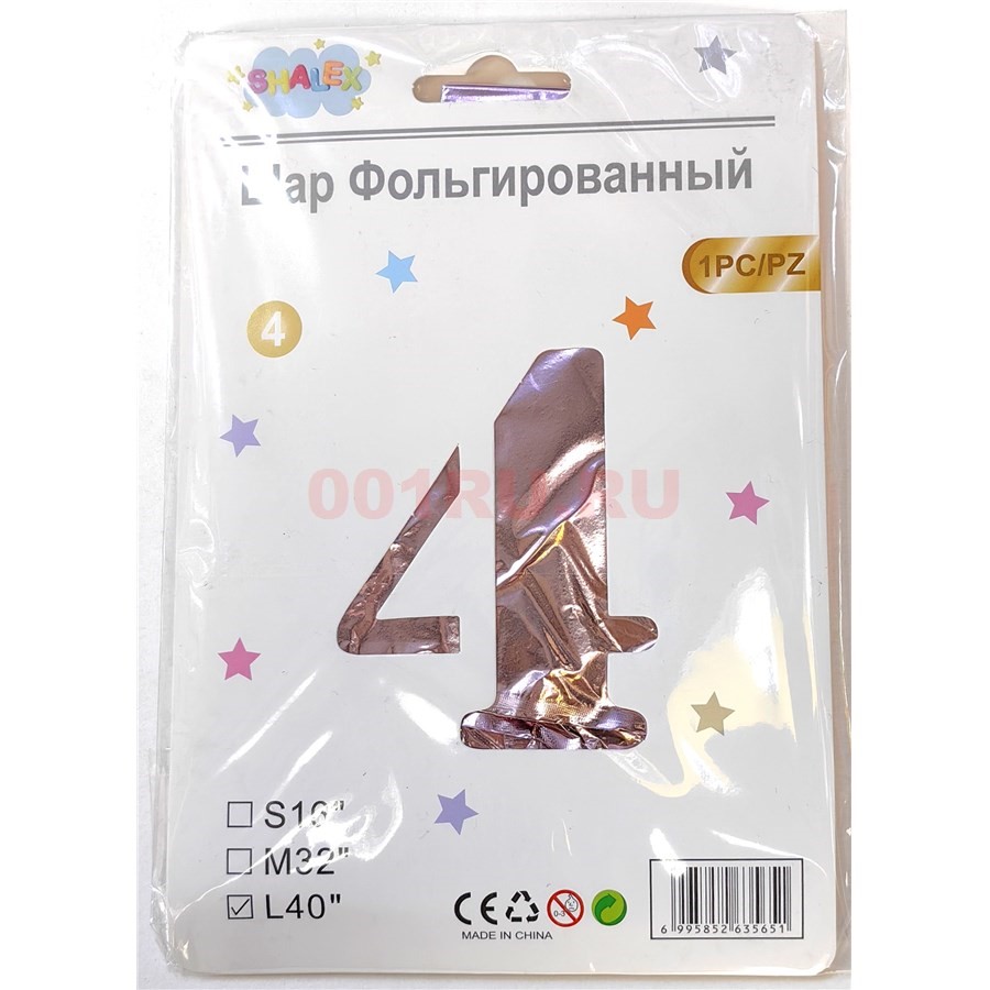 Воздушные шары цвет розовое золото цифра «4» размер 40 дюймов